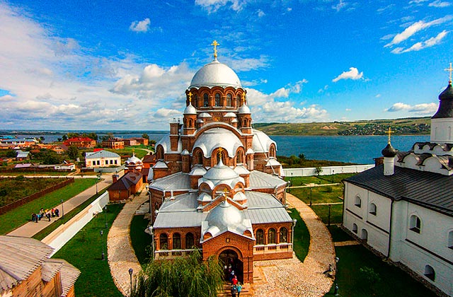 11:00 — Экскурсия «Цитадель завоевателя» на остров — град Свияжск. Свияжск – древняя крепость, построенная в правление Ивана Грозного, служила военным форпостом в Поволжье и местом подготовки военных частей для похода на неприступную крепость Казань. Крепость построили в Угличе, затем разобрали, сплавили вниз по Волге и собрали уже на острове. В маршрут экскурсии в Свияжске входят уникальные исторические памятники: Собор Богоматери «Всех Скорбящих Радость», один из старейших деревянных храмов России — церковь Святой Троицы, действующий Успенский монастырь с архитектурным ансамблем 16-17 вв., Конный двор и ремесленные мастерские, Рождественская площадь откуда открывается вид на водные просторы и Услонские горы.