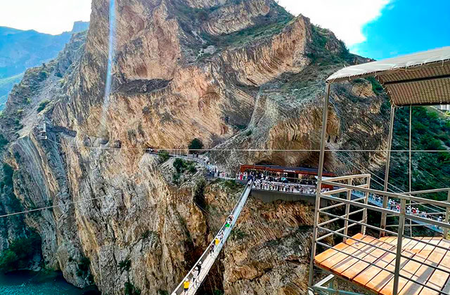 Нас ждёт знакомство с уникальным памятником природы – узким каньоном высотой 170 метров при ширине не больше 2-4 метров напоминает сказочные ворота в затерянный мир. «Каменная чаша» — одна из теснин Хунзахского района. Неприметные скалы, спрятавшиеся за извилистым серпантином, скрывают внутри совершенно другой мир.