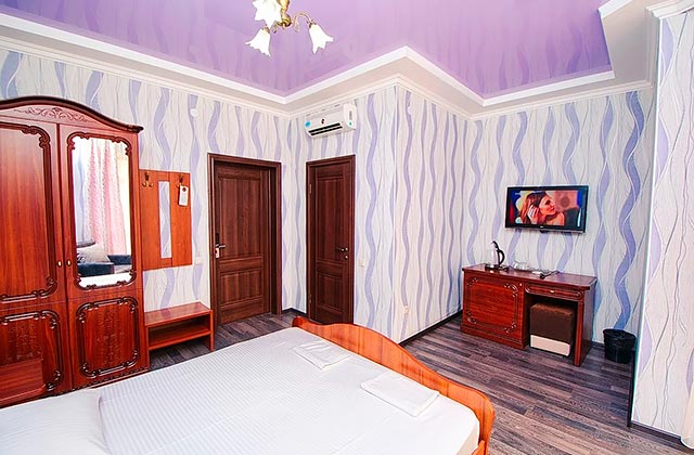 Каждый номер оборудован: кондиционер, тв, Wi-Fi, кровати, холодильник, мебель, ванная комната с феном.